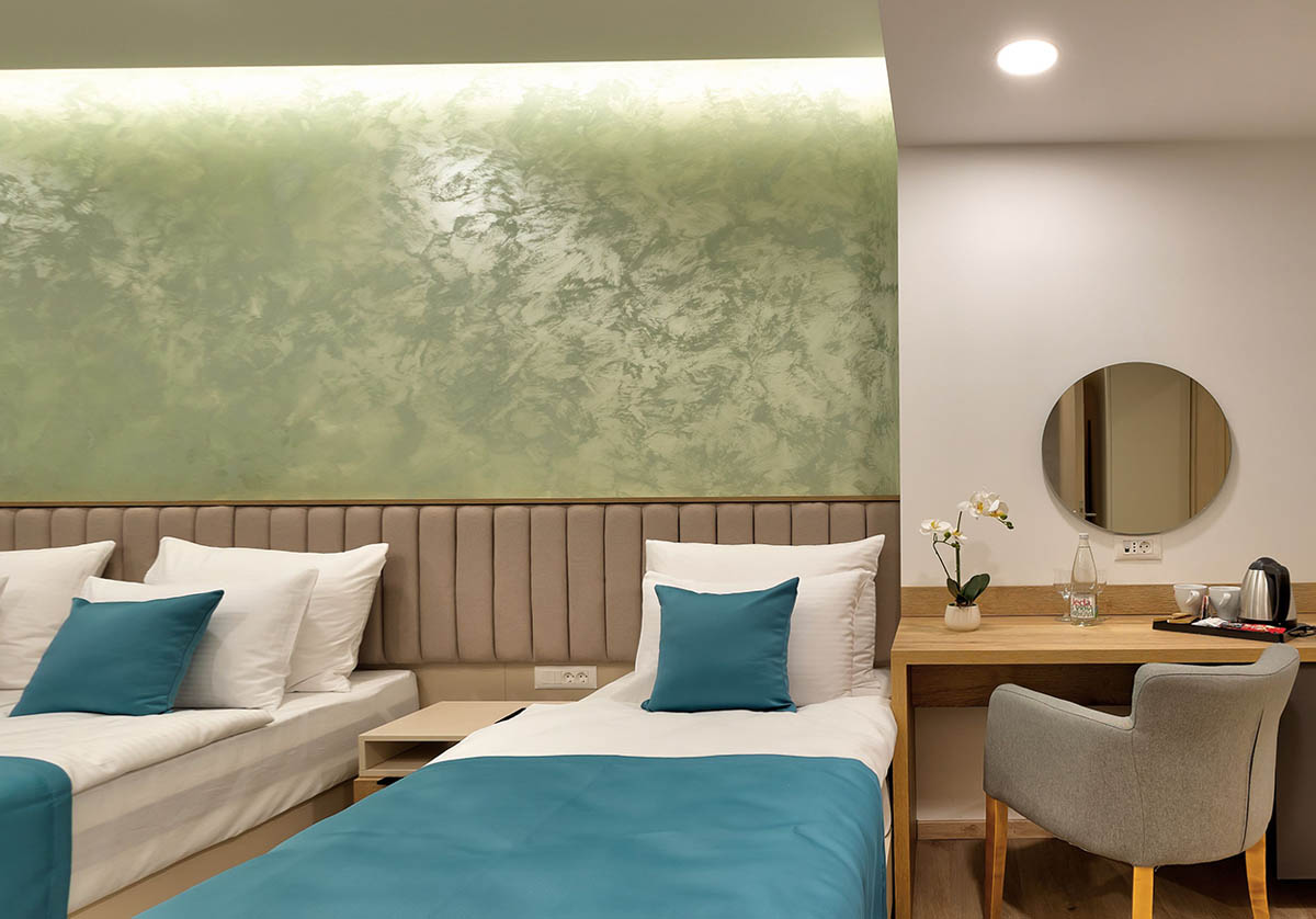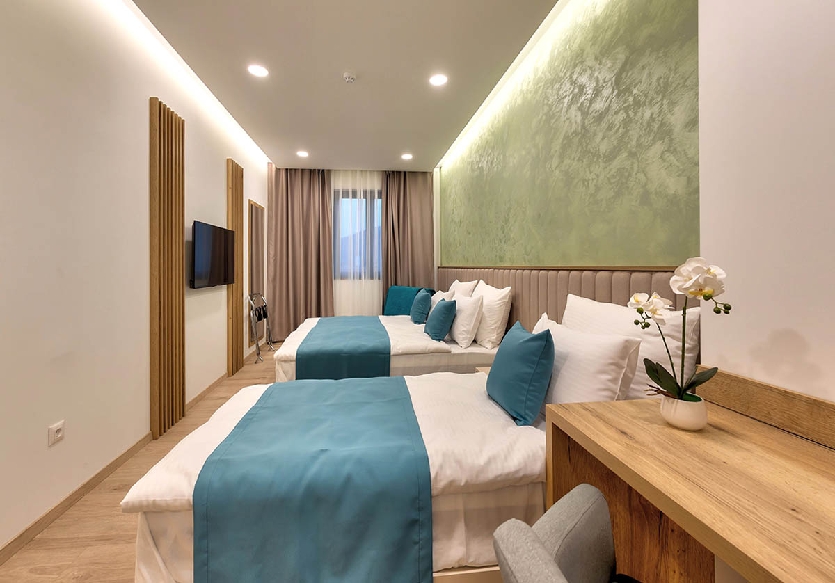 Moderan namještaj sa krevetima odlične kvalitete, namjenski rađenih prema visokim standardima ovog hotela, osigurat će Vam potreban odmor u našoj deluxe sobi.